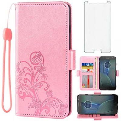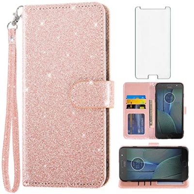 The Asuwish Compatible with Moto G5S Plus Wallet Case and Tempered Glass Screen Protector Flip Wrist Strap Credit Card Holder Cell Phone Cover is designed specifically for the Motorola Moto G5S Plus. This stylish and functional case comes in a beautiful Rose Gold color, making it an ideal choice for both women and men. The case features three card slots, allowing you to securely store your cards and cash without carrying a separate wallet. It also includes a detachable wrist strap and a kickstand that can be converted into a multi-angle view for reading, watching videos, or Facetime. Asuwish provides excellent customer service with a 24-hour professional support team. Plus, the product comes with a warranty for free replacement or full refund if there are any defects.