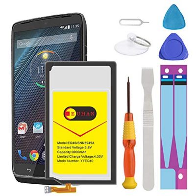 The (Upgraded) Motorola Droid Turbo Battery by Euhan is a high-quality replacement battery for the Motorola Droid Turbo XT1254, XT1225, and XT928 models. With a rechargeable Li-Polymer 3900mAh battery, it offers comparable standby and talk time to the original battery. The battery features an integrated microchip that prevents overcharging and extends its lifespan. To enhance battery performance, it is recommended to fully charge it before initial use. Additionally, the package includes a repair replacement kit with tools for easy battery replacement. Stay connected with your loved ones by having an extra battery for your phone. However, some customers have expressed disappointment with the battery's performance, claiming it discharges quickly. Overall, the battery aims to provide a suitable replacement for the original Droid Turbo battery.