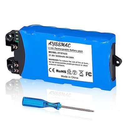 The Ayssmac 3000mAh 21.6V 64.8Wh New Replacement XFBT620 Battery is a high-quality replacement battery compatible with Shark Cordless Vacuum Cleaners. With a voltage of 21.6V and capacity of 3000mAh, this battery offers excellent performance and durability. It is 100% OEM compatible and comes with an interface plug to support various models. The battery is easy to install and features built-in safety protections against overcharge, overdischarge, overvoltage, overcurrent, and overheating. The product is backed by a 30-day no-questions-asked return policy and a 12-month warranty for replacement. If you are in need of a reliable replacement battery for your Shark Cordless Vacuum Cleaner, the Ayssmac 3000mAh battery is a great choice.