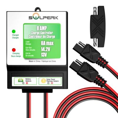 The SOLPERK Solar Charger Controller is a smart regulator designed for 12V solar battery charging. It offers safety features to protect the battery from damage and extend its service life. The controller is compatible with 12V solar panels, with a maximum power of 130W. It also includes LED indicators for easy monitoring and comes with SAE plugs for easy and quick connection. The polarity switch ensures proper connection between the solar panel and solar charger. This controller is a reliable option for maintaining and charging batteries in RVs, boats, cars, and sheds.