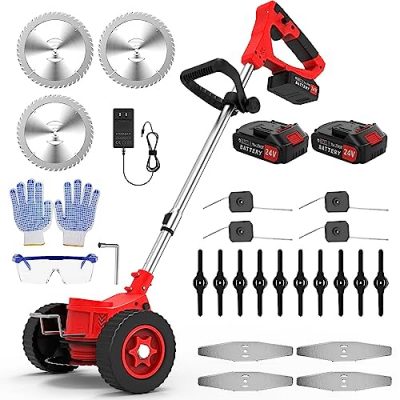Introducing the Mrzneaoch Weed Eater Battery Powered 24v 2.0ah Electric Weed Eater with 17 Saw Blade and 2 Removable Auxiliary Wheel for effortless lawn edging, pruning, and trimming. With upgraded strimmer, improved battery capacity, and remaining power display, this weed eater offers convenience and efficiency. Its lightweight design, adjustable length, and foldable feature make it easy to maneuver and store. Equipped with a powerful motor and various cutting blades, it ensures efficient work for all your mowing needs. The Mrzneaoch Weed Eater also comes with friendly customer service support. Overall, this cordless weed eater provides a convenient and versatile solution for all your lawn maintenance tasks.