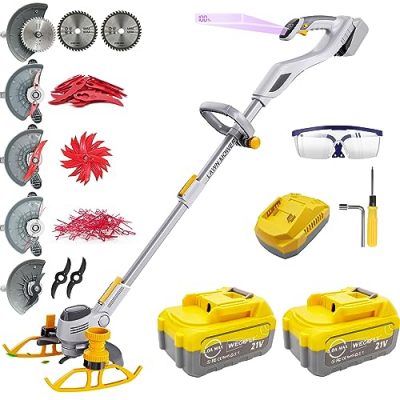 The WeGofly Cordless String Trimmer & Edger is a versatile and powerful lawn tool that provides a 3-in-1 functionality as an edger, weed eater, and brush cutter. It comes with two 21V 4.0Ah high-capacity batteries, ensuring sufficient power for extended use. The machine head can be rotated 90 degrees, allowing easy conversion from a rope trimmer to a wheel trimmer. The included 5 types of blades provide flexibility for various jobs, while the new Sled Assist Bracket design makes it easier to clean the lawn. The package also includes work gloves, safety glasses, and multiple accessories. With its ergonomic design and durable construction, this trimmer exceeds expectations and is a valuable addition to any lawn care routine.