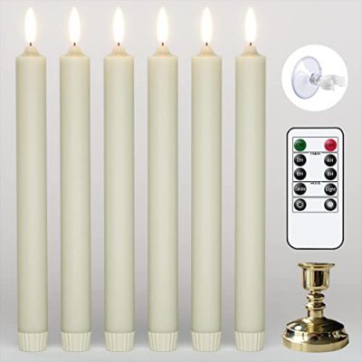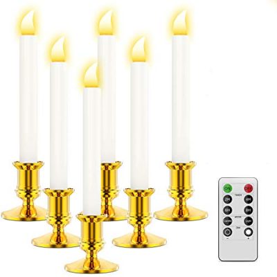 Create a romantic ambiance with the PChero Window Candles. This set of 6 battery-operated flameless LED taper candles come with removable candlesticks, making them perfect for Thanksgiving table and Christmas home décor. The candles are designed to provide a real candle effect with no mess, smoke, or fuss. They are safe for group events and can be placed anywhere you like, from your bedroom to your living room. With a 10-key remote control, you can easily modify the ambiance of the candles at a distance. The candles can be set to flickering flame or steady light, with adjustable brightness levels and timer functions. Powered by 3 AAA batteries per candle, they offer up to 300 hours of lighting time. Bring elegance and warmth to any occasion with these beautiful window candles.