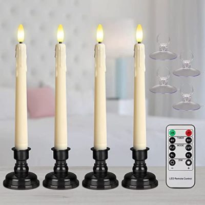 The yunsheng Battery Operated LED Window Candles are perfect for adding a cozy and traditional touch to your home decor. With an excellent design that mimics the look of conventional candles, these flameless taper candles feature a dripping wax appearance and warm white LED lights that flicker and float, creating a realistic flame effect. The candles come with a 10-key remote control that allows you to turn them on/off, adjust brightness, and choose from different flickering modes. The automatic timer function lets you set the candles to stay on for 4 or 6 hours and then automatically turn off. Made with high-quality materials, these candles are safe to use and provide long-lasting illumination. The set includes 4 ivory candles, detachable candlesticks, suction cups, and a remote control. Enhance the ambiance of your home with these beautiful and convenient LED window candles.