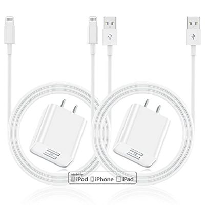 The iPhone Charger [Apple MFi Certified] 2 Pack Apple iPhone Charging Lightning Cable Data Sync Cord with USB Wall Charger Block Box Travel Plug Adapter is a convenient and reliable charging solution for iPhone users. This charger is compatible with various iPhone models, including iPhone 14/13/Pro/Max/XR/X/Xs/Max/8/Plus/AirPods. The MFi Certified Lightning Charger Cord ensures fast charging and data sync capabilities. The charger block is compact and lightweight, making it ideal for travel. It is also approved by the U.S. Safe Market, providing safety and peace of mind. With a 12,000 bend lifetime, the charging cable is durable and long-lasting. The package includes 2 Apple chargers and 2 iPhone USB A to Lightning cables. Overall, this iPhone charger offers high-quality performance at an affordable price.