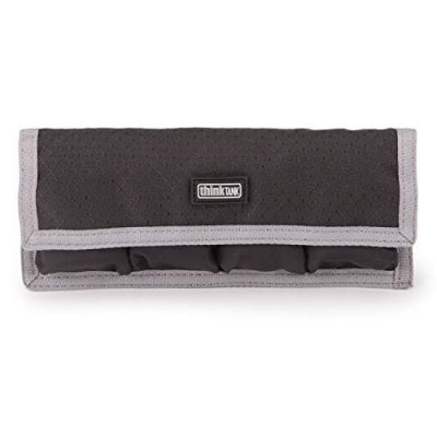 The Think Tank Photo DSLR Battery Holder 4 is the perfect solution for storing, protecting, and carrying your camera batteries. It is designed to fit batteries from various camera bodies, such as Nikon, Canon, Sony, and Fuji. The holder can accommodate up to four standard DSLR batteries and features a secure hook & loop closure with a top-fold design. When not in use, it can be easily compressed flat and stored. With its compact size and lightweight construction, this battery holder is a must-have for photographers who need extra power on hand. It is incredibly organized, allowing you to keep track of used and charged batteries. The sturdy Velcro keeps the batteries in place, ensuring they don't rattle around. While it may not fit larger camera batteries, it is still a great solution for most standard batteries.