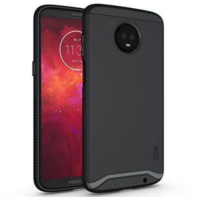 The TUDIA DualShield Phone Case is a shockproof and slim protective case designed for Moto Z3 and Moto Z3 Play. The case offers double protection from drops and scratches with its TPU and polycarbonate combination. It features raised edges to provide additional screen and camera protection. The slim and rugged design offers a comfortable grip, while the precise cutouts allow easy access to buttons. This case is compatible with Motorola Moto Z3 (2018) and Motorola Moto Z3 Play (2018). The TUDIA DualShield Phone Case comes in a stylish Matte Black color.