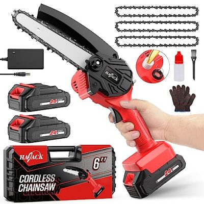 The HAJACK Mini Chainsaw 6-Inch is a versatile and handy tool for any outdoor enthusiast or homeowner. Its compact size and powerful cutting ability make it perfect for trimming trees and cutting wood with ease. The inclusion of spare chains, batteries, and other accessories ensures that you have everything you need for uninterrupted work. While it may have some minor drawbacks like short battery life and occasional issues with the safety button and charger, overall, it delivers reliable performance. Whether you’re clearing fallen branches after a storm or maintaining your garden, the HAJACK Mini Chainsaw is a valuable addition to your toolkit.