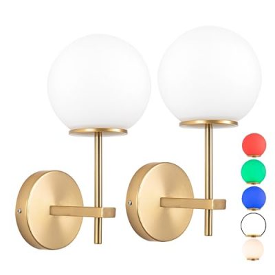 The Battery Operated Wall Sconces Set Of 2 is a stylish and convenient lighting solution for your home. These gold battery powered wall lights come with a white glass globe and dimmable features, allowing you to create the perfect ambiance in any room. With a wireless design and remote control functionality, you can easily turn the lamp on or off, adjust the color temperature, and change the brightness. The lamps offer four color temperature options – white light, yellow light, warm yellow, and warm white, giving you the flexibility to match your home decor. The sconces are easy to install and charge, and with a battery life of over 20 hours, they provide long-lasting illumination. Perfect for bedrooms, living rooms, bathrooms, and hallways, these wall lamps add a touch of elegance and functionality to any space.