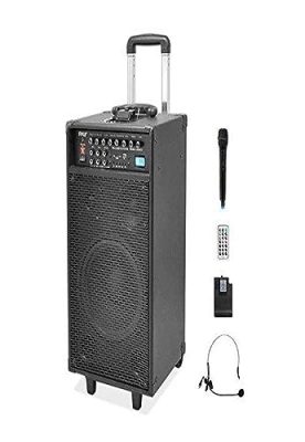 The Pyle 800W Portable Bluetooth PA Speaker is a compact and high-powered speaker system perfect for parties and crowd control. With its built-in Bluetooth, you can easily stream audio from your favorite devices. The speaker also features audio configuration and recording capabilities, allowing you to adjust settings and record audio. It supports USB and SD card playback, and its built-in rechargeable battery makes it convenient and portable. Despite some issues with microphone sensitivity and weak volume output, this speaker delivers great sound quality with good bass response. It's an excellent choice for small room gatherings, weddings, and outdoor events.