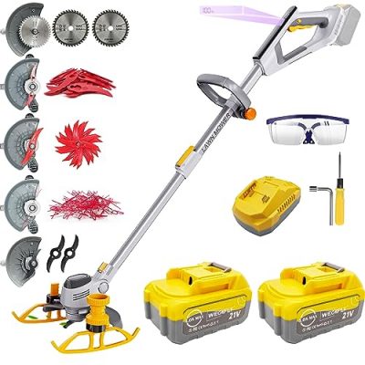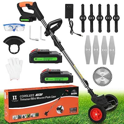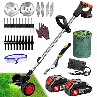 The Weed Eater Battery Powered Weed Wacker with Blades is a versatile and portable tool for keeping your lawn free of weeds. With its lightweight design and foldable feature, it is easy to use and transport. The product comes with 3 types of blades and 2Pcs Li-Ion Batteries, providing convenience and efficiency in trimming grass and cutting weeds. While the wheels may not perform as expected, customers are generally satisfied with the product's performance and affordability. The battery lasts around 45 minutes with heavy weed cutting. However, some customers have reported issues with the product breaking easily and unclear instructions. Overall, the Weed Eater Battery Powered Weed Wacker with Blades is a decent option for those on a budget looking for a portable and efficient tool for their lawn maintenance needs.