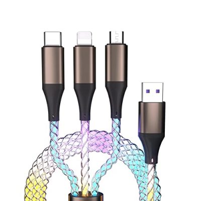 The 3 in 1 Charging Cable Fast Charging is a unique and fun accessory for your mobile devices. It features a flowing LED light design that adds a touch of excitement to your charging experience. The cable is compatible with all devices and comes with three charging tips in one, making it lightweight and portable. Whether at home, in the car, or at the office, this cable is perfect for all your charging needs. In addition, it can be used as a festive decoration, adding a festive touch to any occasion. With its high-quality construction and durability, this charging cable will last you a long time. Please note that the cord length could be longer and the micro USB may be slightly weak according to some reviews. Overall, this charging cable provides a unique and enjoyable charging experience.