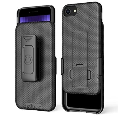 The BELTRON iPhone 7/8/SE 2020/SE 2022 Holster Case is a super slim, rubberized grip case that comes with a swivel belt clip holster and a built-in kickstand. This combo is designed to provide a custom fit and ultimate protection for your iPhone SE3 2022, SE2 2020, 8, 7, 6, and 6s. The case features a sleek profile and open button cutouts for easy access to all functions and controls. With a durable rotating clip that adjusts 180°, you can use it comfortably whether you're left or right-handed. The microfiber interior lining protects your phone's screen from scratches, stains, lint, and dust. The built-in kickstand allows for convenient hands-free viewing. This case is built to withstand everyday use and is trusted by professionals in high activity environments. It comes in black and is available on Amazon.