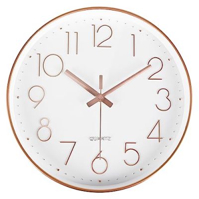 The Yoiolclc Wall Clock is a battery-operated non-ticking analog clock perfect for a variety of living spaces. Its simple dial and clear numbers make it easy to read the time from anywhere in the room. The clock has a high-quality quartz movement, ensuring accurate timekeeping. It operates silently and weighs light. With its easy installation, you can hang it effortlessly using a wall hook. The clock features a sturdy plastic frame, HD glass lens, and a stylish Western modern design, adding both practicality and beauty to your space. It comes in a beautiful rose color and has a dimension of 12.00Lx1.50Wx12.00H inches.