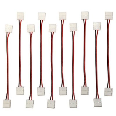 The Biantie La 2-Pin LED Strip Connectors are a convenient solution for connecting LED strip lights without the need for soldering. These connectors are compatible with 8mm width single color LED light strips and can be used with 12v or 24v power sources. They support up to 6A current carrying and can be used to connect longer LED strips. The connectors are not picky about wires and work with various wire sizes. They are also compatible with waterproof LED strips, as long as the silicon covering is peeled off around the soldering line area. This pack includes 10 unwired connectors. Overall, these connectors provide a quick and flexible connection solution for DIY LED strip projects.