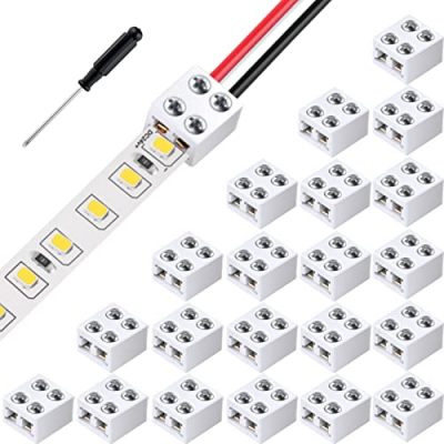 The 2 Pin 10 mm Solderless LED Tape Light Connector Screw Down Terminal Blocks Connector Led Connectors for Strip Lights Tape to Wire is a versatile accessory for your LED lighting needs. With 25 connectors included in the package, you’ll have ample supply for daily convenience. These connectors are easy to operate, simply strip the silicone cover and tighten the screws to connect your LED tape to the wire. They are compatible with various sizes of linear LED strips and support high current of up to 10A, making them suitable for 5V, 12V, and 24V LED strips. The screw down fix design ensures a secure and solderless connection, saving you time and effort. While these connectors offer many advantages, they may not be suitable for all LED strip types and can be challenging to use with stranded wire.