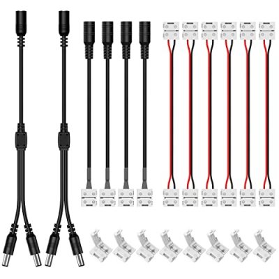 The LightingWill 10pcs/Pack Strip Wire Solderless Snap Down 2Conductor LED Strip Connector is a versatile accessory for 10mm wide SMD5050 5630 single color LED strips. With a working condition that can withstand up to 4A current and 0-24V voltage, as well as heat resistance from -20 ~ 100 degrees Celsius, this connector ensures reliability and durability. It features a solderless quick snap down design, making installation hassle-free. Compatible with both waterproof and non-waterproof light strips, you can easily connect and extend your LED strips. The package includes 10 connectors, and it is available for purchase on Amazon.