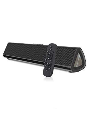 The BS.Neytuel Soundbar for TV with Bluetooth Speakers is a slim and fashionable audio system that delivers powerful stereo sound. With a built-in double horn and DSP bass technology, it provides a loud volume and bass boost for an immersive sound experience. The soundbar is compatible with various devices, including TVs, PCs, tablets, and projectors, thanks to its Bluetooth, USB, optical, coax, and AUX input options. It can be controlled either by buttons or a remote control, making it convenient to use. The black soundbar has a sleek design that can sit flat below monitors, saving space and reducing clutter. Overall, it offers a great audio solution for home theaters and other entertainment setups.