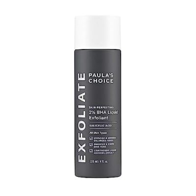 Paula's Choice SKIN PERFECTING 2% BHA Liquid Salicylic Acid Exfoliant is a gentle and non-abrasive leave-on exfoliator that works to improve skin texture, unclog and diminish enlarged pores, smooth wrinkles, and brighten and even out skin tone. It contains 2% BHA, or Salicylic Acid, which mimics the natural exfoliation process of younger skin, shedding extra layers while clearing pores. This unique formula is suitable for all skin types and can be used daily. It visibly reduces fine lines and wrinkles, hydrates the skin, and delivers hydration directly inside pores to improve their function. Paula's Choice offers a wide range of highly effective skincare solutions for the face and body, all made to care for every kind of skin.