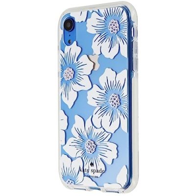 The kate spade new york Protective Hardshell Case is a stylish and durable accessory for your iPhone 8 Plus, iPhone 7 Plus, iPhone 6s Plus, or iPhone 6 Plus. This co-molded hardshell case and shock-resistant bumper provide long-lasting protection, while the lightweight and easy-grip design make it perfect for everyday use. The glossy finish adds to its overall style, creating a sleek and fashionable look. With premium signature kate spade new york graphic prints and colors, this case allows you to showcase your personal style. Available in Hollyhock Floral clear/Cream With Stones color, this case enhances the beauty of your phone while providing reliable protection.