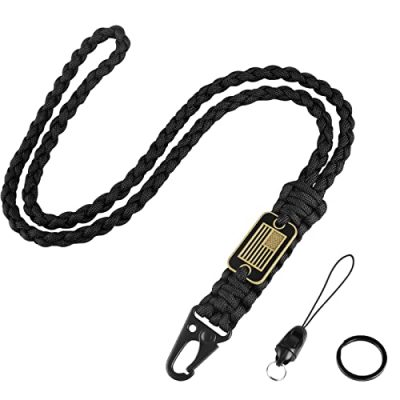 The MDSXO Paracord Key Lanyard is a handmade, comfortable and durable accessory made from genuine military-grade 550 paracords. It features a heavy-duty olecranon hook with a metal quick-release clip and a detachable string, allowing you to keep your phone or wallet conveniently carried. This multifunctional lanyard is perfect for outdoor activities or as a stylish and functional keychain. With its cool USA flag design, it also makes an ideal gift for your loved ones. The long black lanyard is strong, lightweight, and compact. It comes with a metal ring and a detachable string. Enjoy the excellent after-sales service provided by the seller. Overall, this lanyard has received positive reviews from customers who appreciate its quality and functionality.