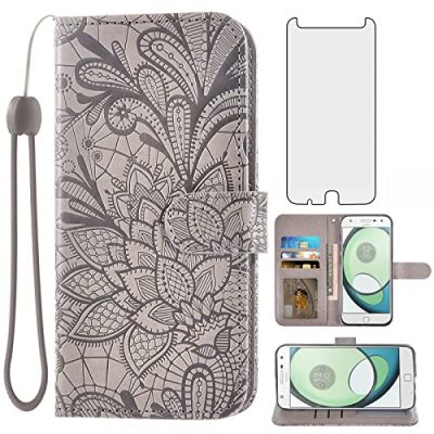 The Asuwish Phone Case for Moto Z Play is a stylish and practical accessory that offers protection and convenience. Compatible with Motorola Moto Z Play / Moto Z Play Droid, this phone case comes with a tempered glass screen protector to safeguard your device. The case features a hidden card slot that securely stores up to three cards and some cash, along with a detachable wrist strap for easy carrying. Its beautiful lace embossed flowers design adds a touch of elegance, while the soft inner layer and tough outer layer of premium synthetic leather provide dual layer protection. The case can also be converted into a kickstand, allowing for hands-free video calls, reading, and watching movies comfortably on your phone.