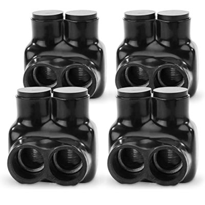 The OHLECTRIC Black Insulated Connector is a versatile and durable product designed for easy electrical connections. This pack of four connectors features a dual side entry with two ports, making it ideal for a variety of wire sizes. The connectors are insulated with a rugged high-dielectric Rubber/Vinyl coating, providing protection and safety. They are rated for use with cables up to 194°F (90°C) and can handle up to 600 Volts. Made from 6061-T6 Aluminum CU9AL, these connectors are dual rated for use with both copper and aluminum wire cables. They come pre-filled with Oxide Inhibitor, making installation and re-insertion of cables a breeze. With terminal covers marked with wire gauge sizes, you can easily determine the appropriate wire size for your connections. The OHLECTRIC Black Insulated Connector is a reliable and efficient solution for your electrical needs.