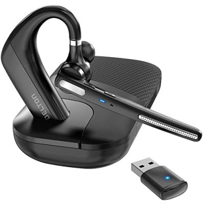 The EKVANBEL Bluetooth Headset V5.1 is a wireless headset designed for use with computers. It comes with a 500mAh charging case that provides 12 hours of music play time and 14 hours of talking time. The headset features a noise-canceling microphone for clear sound during calls and supports voice assistant for hands-free calling. It also includes a USB dongle for use with computers that do not have Bluetooth capabilities. The headset is equipped with Bluetooth v5.1 for stable connections and can be connected to two devices simultaneously. With its sleek design and convenient features, the EKVANBEL Bluetooth Headset V5.1 is a versatile option for driving and office use.