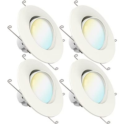 The Sunco LED Can Lights Eyeball Retrofit Gimbal is a top-rated 5 inch / 6 inch retrofit gimbal with selectable color temperature. It offers easy CCT selection with a slider switch on the back, allowing you to choose from 5 colors (2700K, 3000K, 3500K, 4000K, 5000K). The light is dimmable, providing seamless dimming capabilities from 100% to 10% to fit any mood or decor. Installation is simple, suitable for damp locations, and adjustable to fit 5 inch or 6 inch housing. The LED retrofits turn on instantaneously with LED flicker-free technology. It comes with a 7-year warranty and is backed by industry-leading warranties and knowledgeable support specialists.