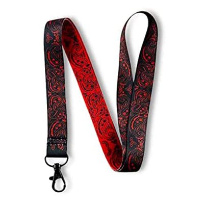 - These lanyards come with red patterns, logos, or text printed on the strap.