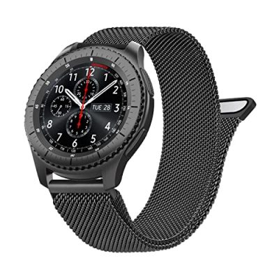 Upgrade your smartwatch with the Compatible with Galaxy Watch 3 45mm/Samsung Galaxy Watch 46mm/Gear S3 Frontier/Classic Band. Made with top stainless steel mesh, this black mesh band is not only stylish but also durable. It features an adjustable free size to fit different wrist sizes and is easy to install with quick release pins. The band is compatible with Samsung Gear S3 Frontier, Samsung Gear S3 Classic, Samsung Galaxy Watch 46mm, and other 22mm smartwatches. However, the magnet clasp may loosen during high-impact activities. Overall, it is a decent band for the price with some minor flaws.