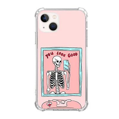The Wizeyake Hippie Skeleton Selfie Phone Case is a trendy and unique protective cover for the iPhone 14 Plus. Designed with a cool and fashionable 'You Look Good' pattern, this case fully shows off your personality. It offers excellent protection with its 360° full body heavy defense feature, covering all corners and buttons to guard against scratches, bumps, and daily damage. The raised edges provide additional protection for the camera and screen. Made from durable silicone TPU material, the case is soft, thin, and sturdy, ensuring long-lasting use. With precise cutouts, it offers easy access to all buttons, controls, and ports without removing the case. This phone case also makes a perfect gift for your loved ones. Overall, it is a stylish and reliable case that appeals to trendy individuals.