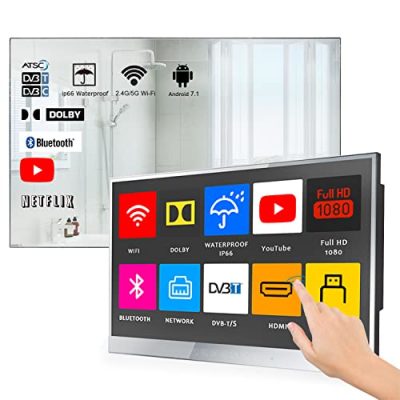 If you’re looking to add entertainment to your bathroom, the Soulaca Smart Magic Mirror LED TV is an excellent choice. Its full touch screen interface and Android operating system provide convenience and access to various streaming apps. The IP66 waterproof design ensures durability and reliability. With its slim digital TV display and high-resolution visuals, you can enjoy an enhanced viewing experience. The installation options make it versatile and suitable for various bathroom designs. Despite the lack of a frame, the TV’s clean design adds a touch of sophistication. Overall, the Soulaca Smart Magic Mirror LED TV offers a unique and luxurious entertainment solution for bathroom enthusiasts.