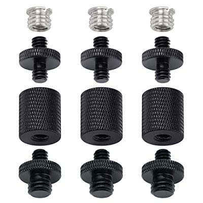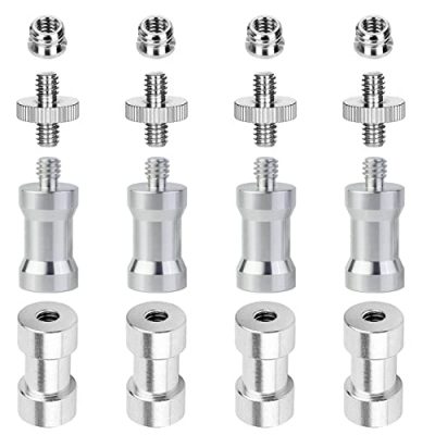 The Frgyee 12 Pcs 1/4" 3/8" Light Stand Adapter is a high-quality and durable camera tripod adapter. Made out of solid metal, it offers reliability and longevity. This adapter set is a great replacement for cheap plastic adapters and holds your flash light securely. With 12 screw adapters included, it provides versatile connectivity for rigs of 1/4" or 3/8" screw threads. The knurled surface ensures easy installation and removal, while the lightweight design makes it convenient to carry as a backup. The Frgyee Light Stand Adapter is suitable for a range of photography accessories, allowing you to explore various rig combinations for your photo shooting.