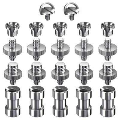 The Camera Screw, 22 Pcs Tripod Screw Adapter Converter Ring Screw Pack is a versatile and practical kit for photographers. It includes various screw adapters and D-ring screws, allowing users to attach a wide range of camera devices and accessories. Made of durable materials like aluminum alloy and stainless steel, these adapters are reliable and long-lasting. The kit comes with five sets of different adapters, providing ample options for different photography setups. The Muscccm tripod screw adapter kit is economical and convenient, eliminating the need to buy additional camera adapters. With its precision design and multi-functionality, this screw adapter pack is a valuable addition to any photographer's toolkit.