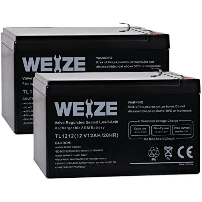 The Weize 12 Volt 12AH SLA Rechargeable Battery is a set of two 12V 12AH sealed lead acid batteries that are ideal for both cycle and standby use. These maintenance-free batteries have a non-spillable design and can operate in any orientation. They meet or exceed OEM sla battery specifications and are made with AGM technology, providing strong resistance to shock and heat. The batteries can be used for various applications, including kids riding toys, emergency lighting, security alarms, and more. It is important to compare the physical dimensions, volts, and amp power of your original battery to ensure compatibility. With a 1-year warranty and excellent customer support, the Weize battery set offers high quality and reliability.