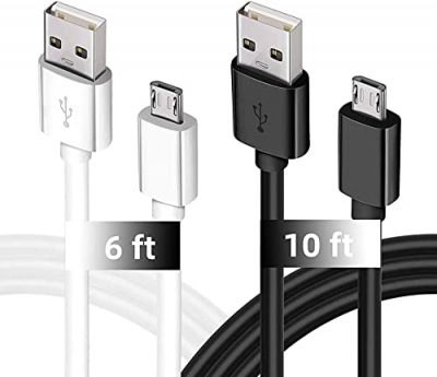 The Deegotech Micro USB Cable is a 10-foot long Android charger cable that provides fast charging and data sync capabilities. Made with double-braided nylon, the cable is robust and durable, with a tested 4000+ bend lifespan. It is compatible with most Android phones & tablets with a micro USB port, as well as other devices such as gaming controllers, wireless keyboards, and more. The wide diameter wire and reduced resistance allow for charging speeds up to 2.4A, faster than most standard cables. With its extra-long length, you can comfortably use your devices while they are connected to a power source. The cable comes in a pack of three and is available in black and white color options.