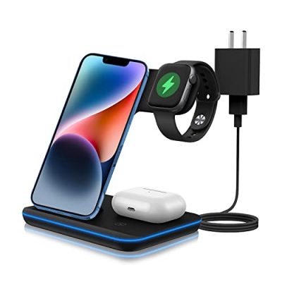 The OVISBAI Wireless Charging Station is a versatile 3-in-1 docking station for iPhone, Apple Watch, and AirPods. It features a professional Qi Certification and allows for simultaneous charging of multiple devices. The dual coil design enables both vertical and horizontal charging positions, providing a comfortable charging experience. With over-current, over-charge, over-voltage, over-heat protection, and foreign object detection, the charger ensures the safety of your devices. The soft LED light indicator displays the charging status clearly. The package includes the wireless charging station, Type C cable, 18W adapter, and a user guide. The OVISBAI Wireless Charging Station offers compactness, durability, build quality, and performance, and it comes with a 6-month free return service.