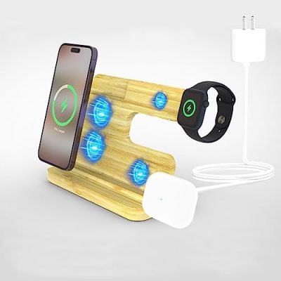 The 3 in 1 Wireless Charging Station is a stylish and functional solution for Apple device users. Its eco-friendly bamboo design, fast charging capability, and ability to charge three devices simultaneously make it a must-have for Apple fans. The flexible wireless charging orientation and built-in protections ensure a convenient and safe charging experience. It also makes a great gift option for occasions like Father’s Day, Mother’s Day, Christmas, and more. However, it’s important to note that this charging station is only compatible with wireless charging devices. Overall, this wireless charging station offers a clutter-free and efficient charging solution for Apple enthusiasts.