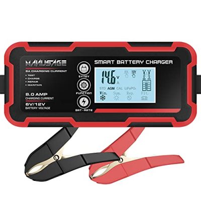The Manusage 8-Amp Fully-Automatic Smart Charger is a versatile and reliable charger for all your 6V and 12V lead-acid batteries. Whether you need to charge or repair flooded, AGM, gel, deep cycle, or even 12V lithium batteries, this charger can handle it all. It is compatible with a wide range of vehicles, including cars, SUVs, RVs, trucks, motorcycles, scooters, lawn mowers, ATVs, tractors, boats, and more. The charger offers multi-protection features to ensure safe and efficient charging in any weather condition. With its smart digital LCD screen, you can easily monitor the charging status and battery information. The Manusage Smart Charger uses an advanced 8-step charging method to recondition and maintain your battery, resulting in stronger engine starts and a longer battery life.