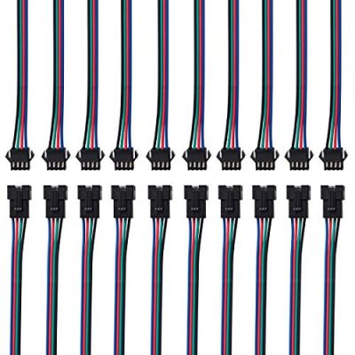 - Package includes 10pcs of connector cable and 10pcs of 4-pin male to male LED plugs