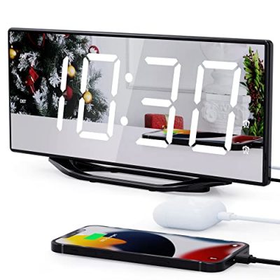 The DreamSky Wooden Digital Alarm Clock is a stylish and functional desk clock with large, easy-to-read numbers. This compact alarm clock is perfect for all ages, from kids to seniors. With 5-level dimmable brightness and an adjustable volume alarm, it caters to individual preferences. The clock also features a battery backup alarm for power outages, ensuring you never miss an important schedule. Additionally, it comes with a USB charger for convenient device charging. The sleek wooden face adds a touch of elegance, making it a great addition to any room. With its simple design and manual DST function, this alarm clock is hassle-free to use. Overall, this clock combines style and functionality, making it a top choice among digital alarm clocks.