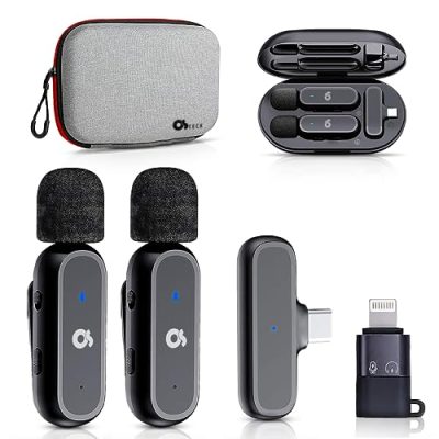 The OS TECH Dual Wireless Lavalier Microphone is the perfect solution for anyone seeking professional-quality audio for their video recordings, YouTube videos, TikTok, IG, podcasts, and interviews. With stress-free plug & play functionality, you can easily connect the microphone to your iPhone or Android device without the need for Bluetooth setup or downloading an app. The intelligent noise reduction/cancellation technology ensures clear and crisp audio even in noisy environments. The microphone features all-day battery power and comes with a charging case that can charge multiple times. Its long-range wireless portability allows for audio recording up to ~100 feet. Additionally, the microphone is compatible with various devices such as iPhone, iPad, Android, Macbook, PC, and Laptop.