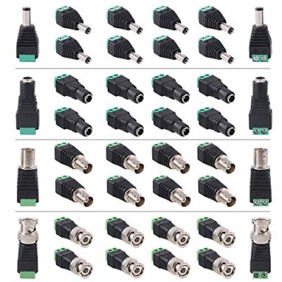 The Hilitchi 40 Pcs DC Power Connector and BNC Male Balun Connector is a perfect solution for those who want to create custom power cables for CCTV cameras. Made of zinc alloy and nickel-plated pins, these connectors are wear and corrosion resistant, ensuring a good transmission effect. The package includes 10 x DC Male Connector, 10 x DC Female Connector, 10 x BNC Male Connector, and 10 x BNC Female Connector. These connectors are easy to use and make camera installation quick and hassle-free. They are suitable for connecting power from a DC power source to surveillance cameras. The Hilitchi connectors come in a convenient pack, ensuring a smooth transmission and better audio quality. With a black color and positive/negative clearly marked on screw terminals, these connectors are both functional and easy to use. If you have any quality issues or questions, Hilitchi provides excellent after-sale service to solve any problems. Overall, this connector kit offers great value and convenience for any CCTV camera setup.