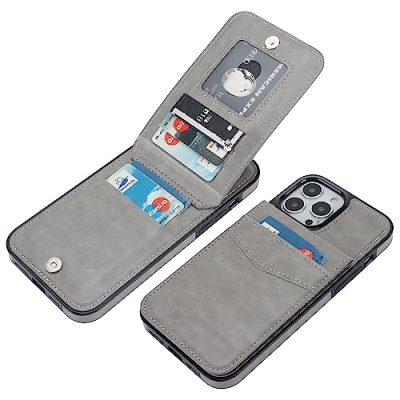 The KIHUWEY Compatible with iPhone 13 Pro Max Case Wallet is a premium leather protective cover for your iPhone. Made of high-quality PU leather, it not only feels softer but also looks more comfortable. The case features a functional wallet design with 6 card slots that securely hold more than 3 cards and some cash. It also includes a convenient kickstand which is perfect for reading, watching videos, browsing the web, and having face-to-face chats with friends. The full-frame protection with a 1.5mm raised buffer edge prevents your phone from scratching on flat surfaces and protects it from dropping or shocking. The case is compatible with iPhone 13 Pro Max 6.7 Inch Display (2021 New Released) and is available in gray. Overall, it offers a stylish and practical solution for iPhone users who want to carry their cards and phone together.