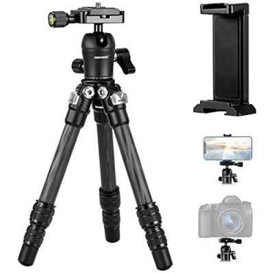 The NEEWER 15.7″/40cm Carbon Fiber Camera Tripod with Phone Holder is a compact and lightweight tripod that offers excellent quality and functionality. It is perfect for vloggers and photographers who need a portable tripod for outdoor shooting. The tripod’s rigid carbon fiber construction provides stability for sharp images and videos, while its flexible leg positions and 360° rotatable ball head allow for versatile shooting angles. The extendable phone clamp and cold shoe are convenient features for smartphone and accessory mounting. The tripod does have some limitations, such as stability issues at certain leg positions and a lack of height for some users. However, overall, this tripod offers great value for its quality and features.