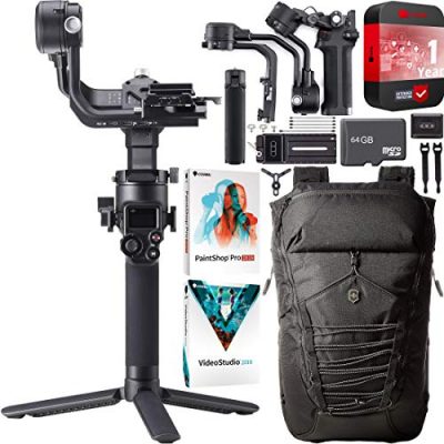The DJI Ronin RSC 2 is a powerful handheld 3-axis stabilizer designed for DSLR and mirrorless cameras. With its foldable design, it offers easy transportation and storage, along with expanded shooting options. The Titan Stabilization Algorithm ensures smoother footage, even with zoom lenses. The built-in OLED screen provides complete control at your fingertips, and the advanced battery offers a 14-hour runtime. It is compatible with a wide range of cameras from top brands. The bundle includes the DJI RSC 2 Handheld Gimbal Stabilizer, a travel backpack, a 64GB microSD card, and photo video studio software kit.