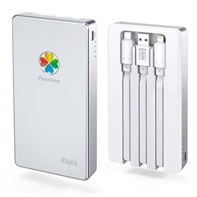 The iDiskk 1TB Mfi Certified External Hard Drive is a convenient storage solution for iPhone, iPad, Android, MacBook, and PC users. With its built-in 2000mAh battery, you can easily transfer and backup your photos and videos. The one-tap backup feature allows for quick and automatic backup of your iPhone or iPad album. The device also offers highly confidential data encryption technology to protect your privacy. It is MFi Certified and compatible with various iPhone, iPad, Mac, Android, and PC models. The iDiskk Portable Hard Drive is plug-and-play, requires no software installation, and allows for easy file transfer. With its compact size and sleek design, it is perfect for travel and on-the-go use.