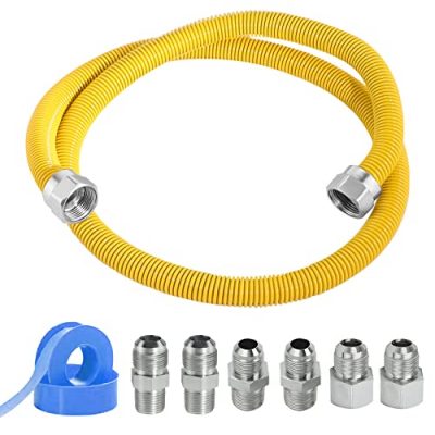 The **Hosile 48″ Flexible Gas Line Kit** is a reliable and high-quality solution for connecting gas dryers, stoves, and ranges. It offers excellent flexibility, durability, and ease of installation. With its wide range of adapter options, it can accommodate various equipment. The kit is made of durable materials and has been 100% leak tested for peace of mind. The only drawback is that the connectors may not fit all dryer sizes as stated in the description. However, overall, this gas line kit provides great value for its price. With a customer rating of 4.5/5, it is a highly recommended product.