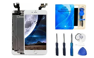 The for iPhone 6 Plus 5.5 Inch with Home Button Front Camera Facing Proximity Sensor Earpiece Speaker Full Assembly Digitizer Display LCD Screen Replacement Repair Tools Kit Black is a compatible replacement screen for the iPhone 6 Plus. It comes with a full pre-assembly, including the front camera, proximity sensor, earpiece speaker, and home button, making it easier to repair the screen display problem. The kit also includes the necessary tools and directions for a fast and easy installation. The upgraded chip technology provides a sensitive and smooth touch response, high color resolution, and brightness while saving energy. However, it's important to note that Touch ID and fingerprint functions only work with the original Home button. Overall, it offers a cost-effective solution for replacing a damaged screen on the iPhone 6 Plus.